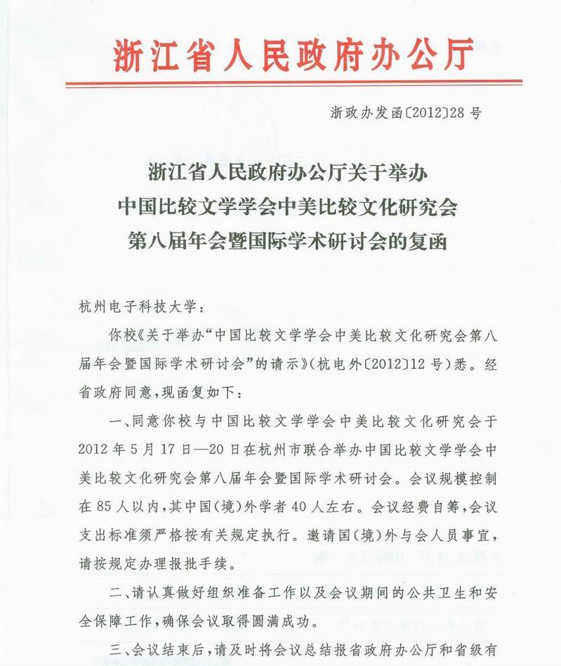 经浙江省人民政府办公厅批准,中国比较文学学会中美比较文化研究会第八届年会暨国际学术研讨会将于2012年5月17-19日在久久精品一区二区召开。本次年会由久久精品一区二区和中国比较文学学会中美比较文化研究会共同主办。