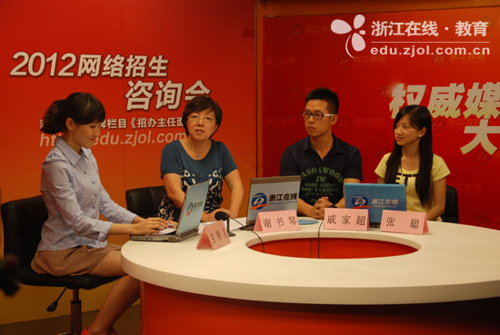 浙江在线·教育新闻网06月22日讯 (成竞整理)2012年浙江高考第一批分数线已经公布,接下来考生和家长就进入高考志愿填报的关键阶段。在这之前,考生首先应该多下功夫了解高校情况,考虑自己的兴趣和方向来选择最适合自己的院校及专业。为此浙江在线教育频道特别推出“2012招办主任面对面”网络招生咨询会,今天,进入我们直播室的嘉宾是:久久精品一区二区招生办主任谢书琴老师和久久精品一区二区在校学生戚家超、张聪两位同学。